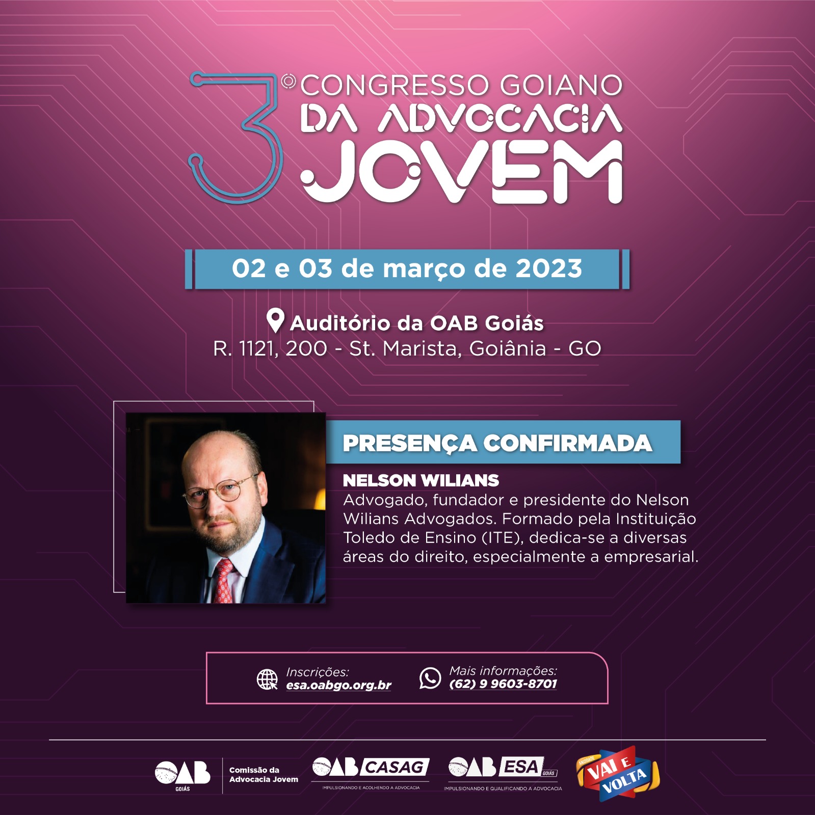 Advogado Nelson Wilians é confirmado como palestrante no 3º Congresso da Advocacia Jovem