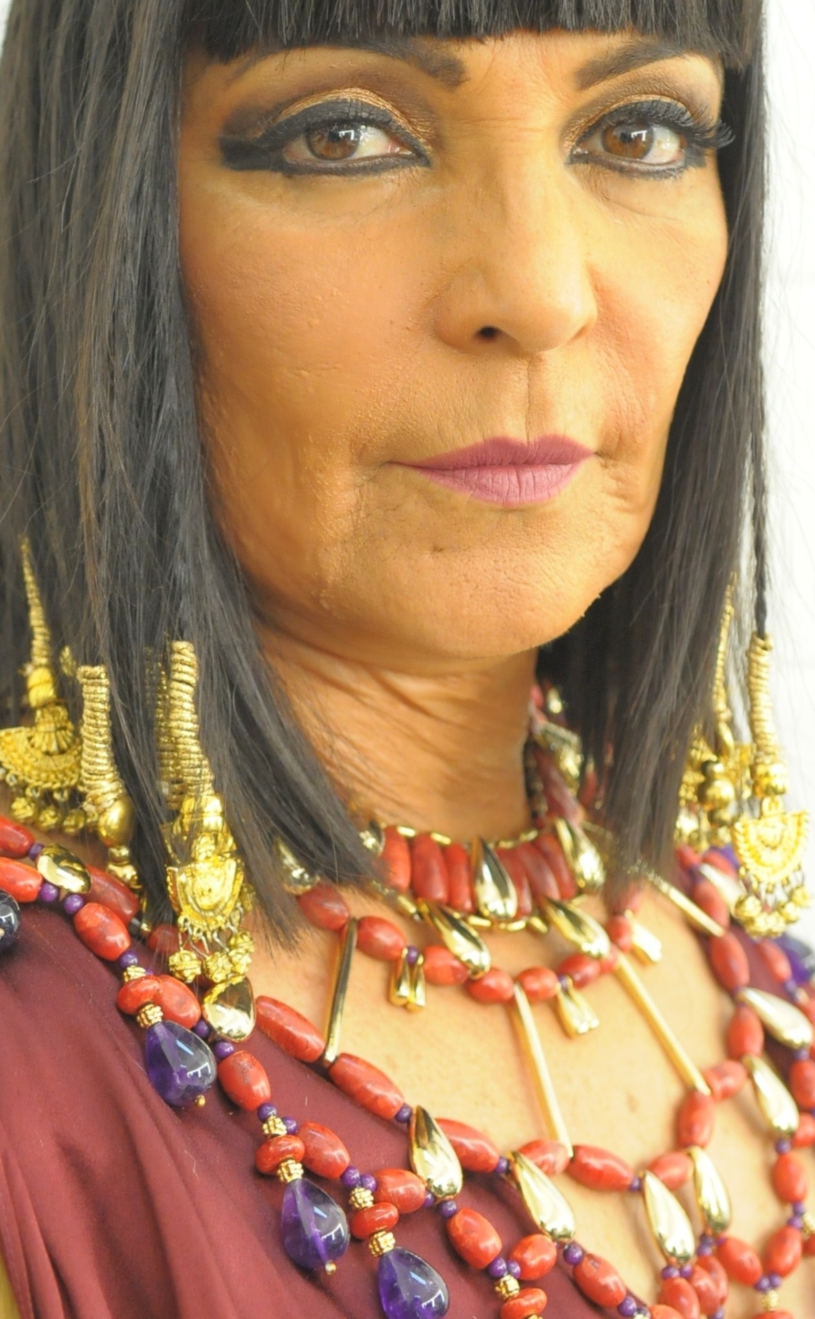 A novela "Os Dez Mandamentos" vem chamando a atenção do público por causa da caracterização dos personagens. Vera Zimmermann, por exemplo, graças a um truque de maquiagem, aparece.
