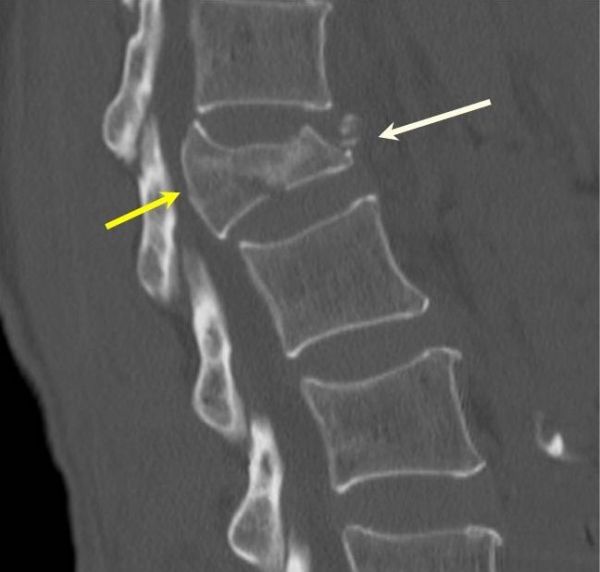 In traumatic injuries lumbar spine fractures can be associated with: pelvic or sacral fractures. intra-abdominal injuries. lower rib fractures. thoracic or cervical spine fractures. calcaneal fractures. long bone fractures or dislocations. diaphragmatic rupture / pneumothorax. In a non-traumatic setting, there are often concomitant fractures 3.
