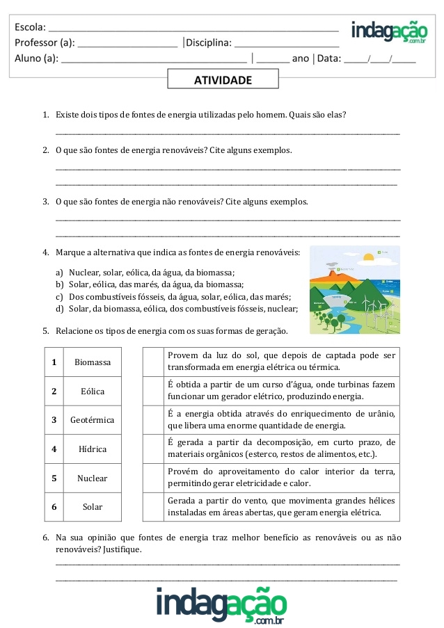 E.M. João Carlos Pinheiro Marques Aula de Ciências 8º ano atividade sobre tipos de energia AULA 02