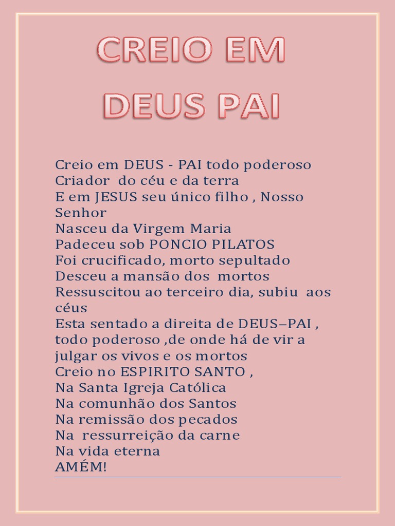 CREIO EM DEUS PAI Ne TODOPODEROSO CRIADOR DO CÉU EIDA TERRA. E EM JESUS CRISTO SEU ÚNICO FILHO