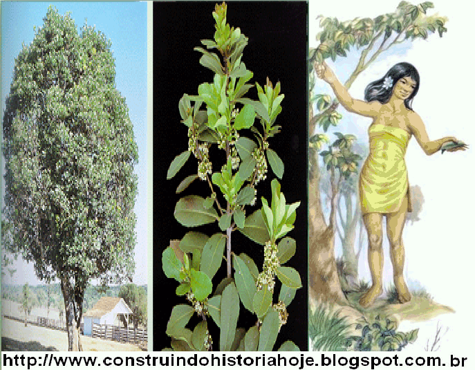 Árvore IIex Paraguariensis, folhas de ErvaMate e a deusa Guarani CaáYari, deusa dos ervais e