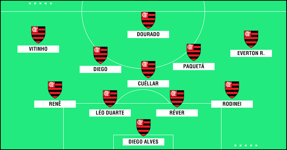 Escalação do Flamengo Tite optou por escalar um trio defensivo com Fabrício Bruno, David Luiz e Léo Ortiz. Assim, Lorran, que estava previsto para iniciar em campo na frente, começa no banco.