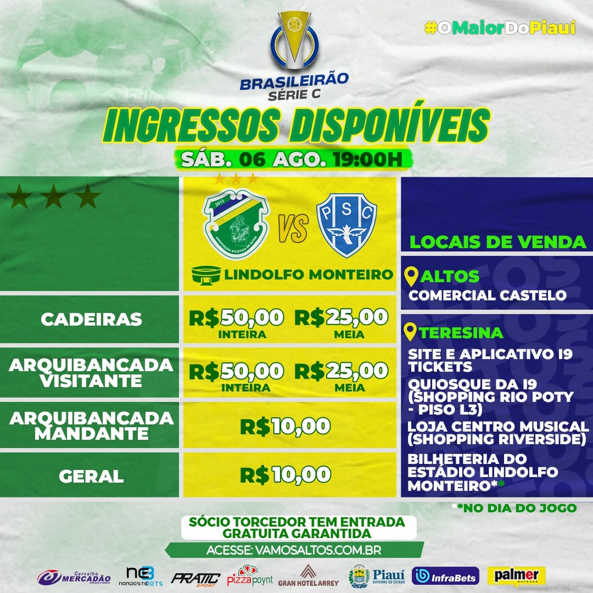 Altos x Paysandu veja onde comprar ingressos para a partida da Série C altos ge