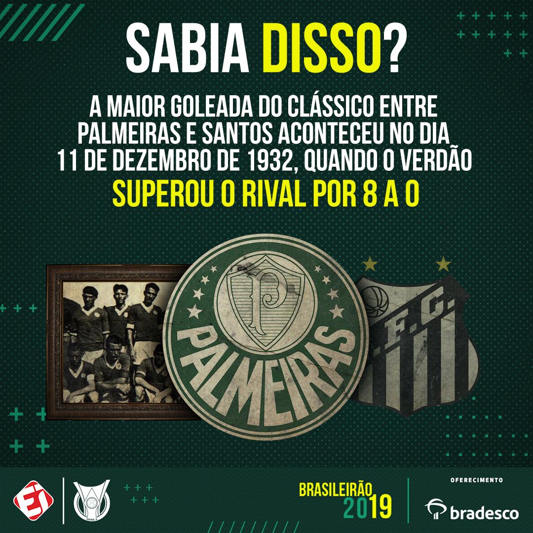 A maior goleada do clássico aconteceu em 1932, quando o Palmeiras (ainda como Palestra Itália) aplicou 8 a 0 no Santos. Antes, em 1915, o Peixe havia goleado por 7 a 0, na casa do rival. Já, em confrontos eliminatórios o Peixe leva vantagem. Eliminou o rival no mata-mata do Paulistão em 1964, 1965, 2000, 2009, 2013 e 2016; e levou a melhor.