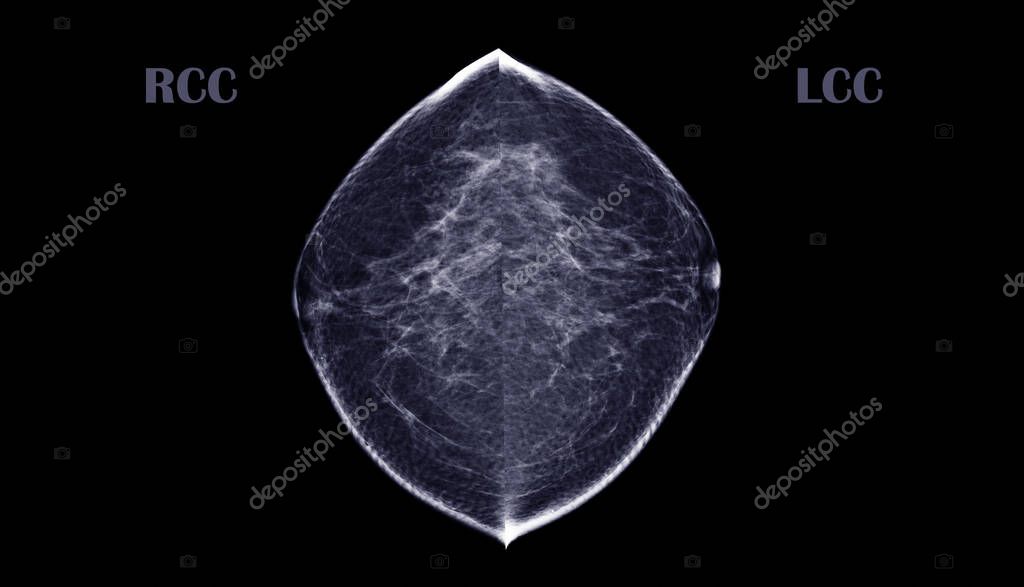 Radiografía Mamografía digital o mamografía de ambos lados CC Vista que muestra tumor benigno BI