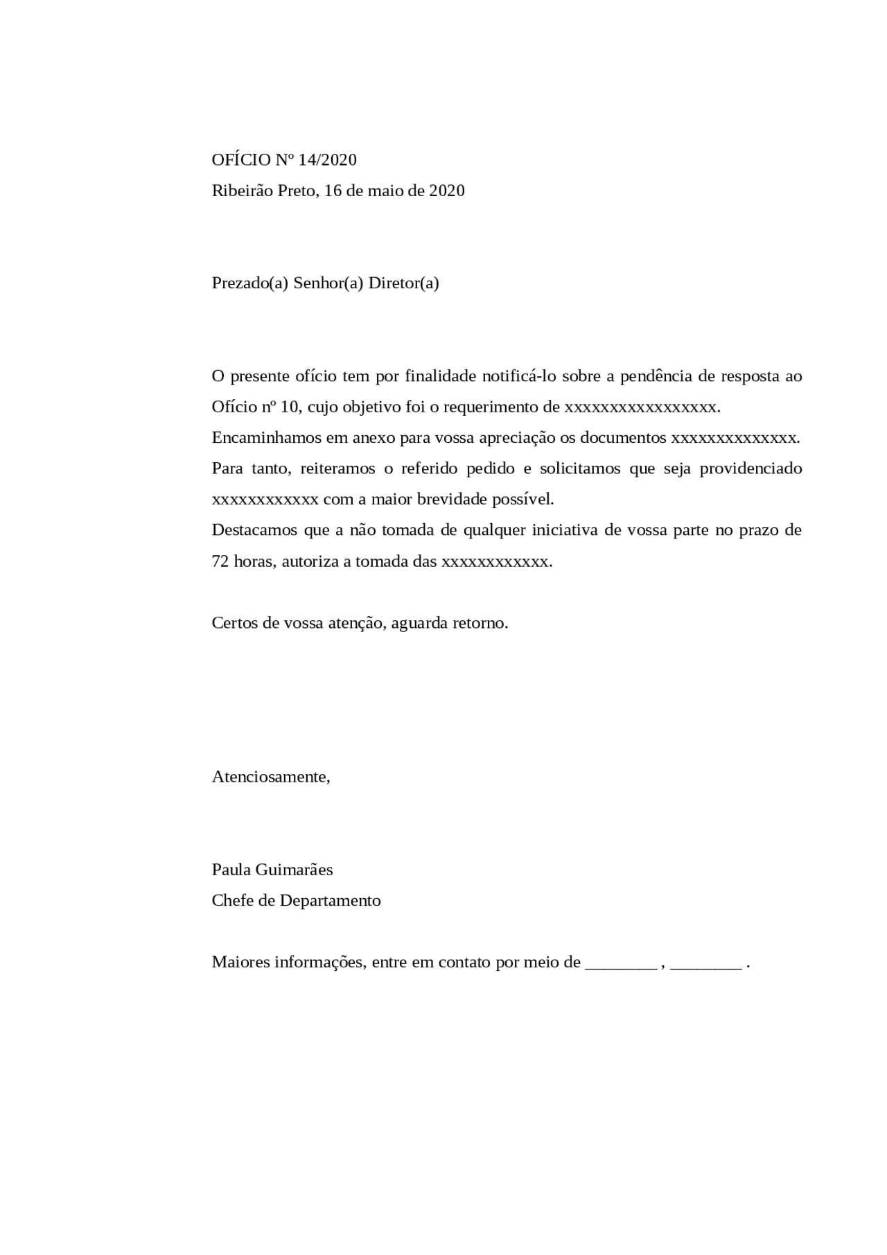 MODELO DE UM OFÍCIO (PORTUGUÊS) Resumos Língua Portuguesa Docsity