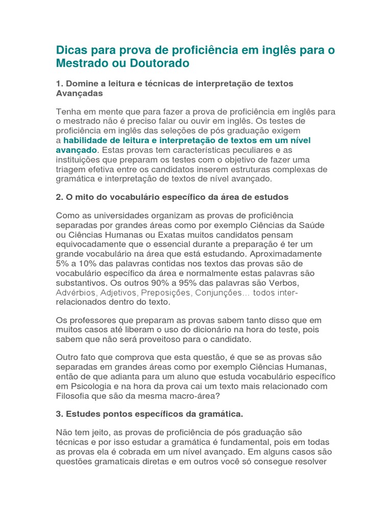 Exame de Proficiência em Inglês PDF Mestrado Pósgraduação