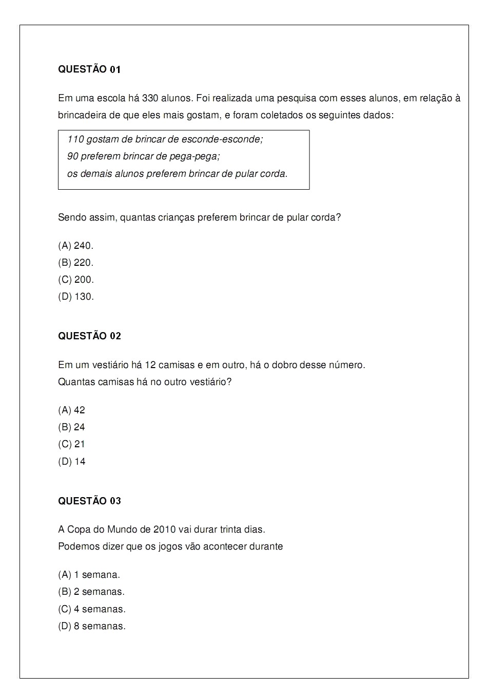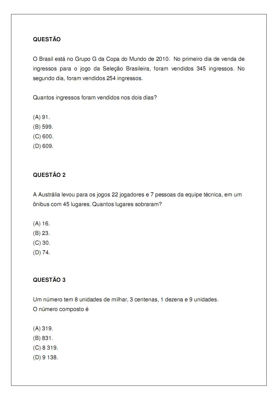 35 ATIVIDADES DE MATEMÁTICA 3° ANO MÚLTIPLA ESCOLHA PROVAS EXERCÍCIOS AVALIAÇÕES PARA IMPRIMIR