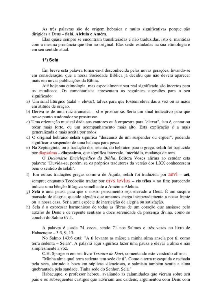 O significado e uso das palavras hebraicas "Selá", "Aleluia" e "Amém PDF Bíblia Salmos