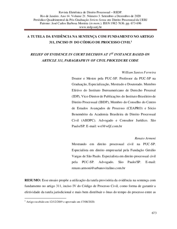 (PDF) A TUTELA DA EVIDÊNCIA NA SENTENÇA COM FUNDAMENTO NO ARTIGO redp rj William Santos